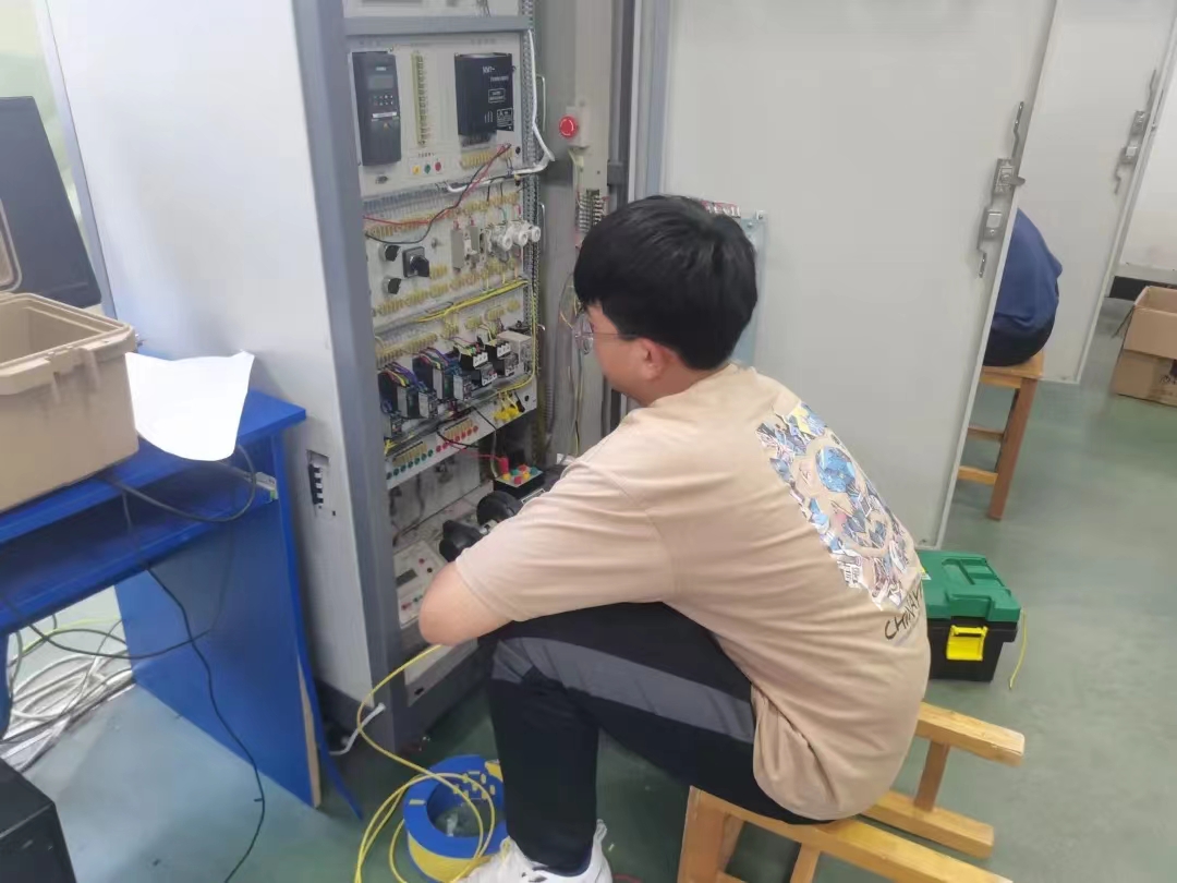 下午3点半,参赛选手在6号楼405进行签到,工作人员确认选手参赛信息后,将同学们带领至605和613实训室等候比赛。比赛开始后,选手在规定时间内根据指定的比赛任务进行图纸设计和电路安装,期间,中心工作人员维持赛场纪律,保证比赛的公平公正。选手完成作品后,由电气自动化专业和工业机器人专业的评委老师进行评分。各参赛选手在赛前进行积极准备,不断练习,在比赛过程中表现出良好的综合素质和专业水平。