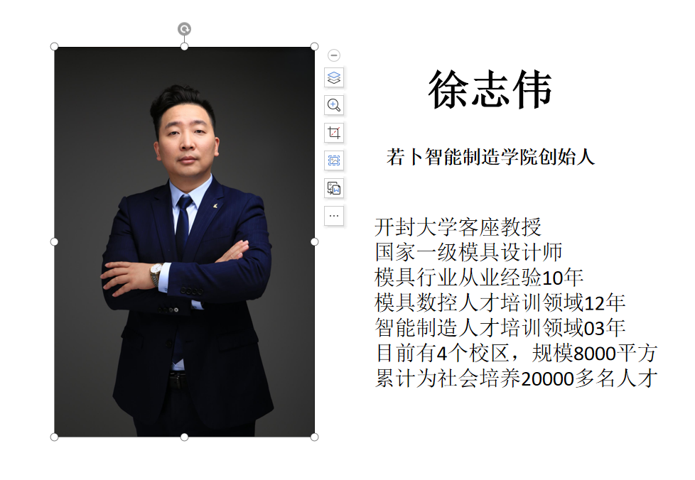 徐志伟,现为江苏苏州若卜智能制造学院校长,国家一级模具设计师,模具行业从业经验10年,模具数控人才培训领域12年,智能制造人才培训领域3年。本次校庆日返校之机,被学校聘为客座教授,为本院学子讲学并提供就业指导。