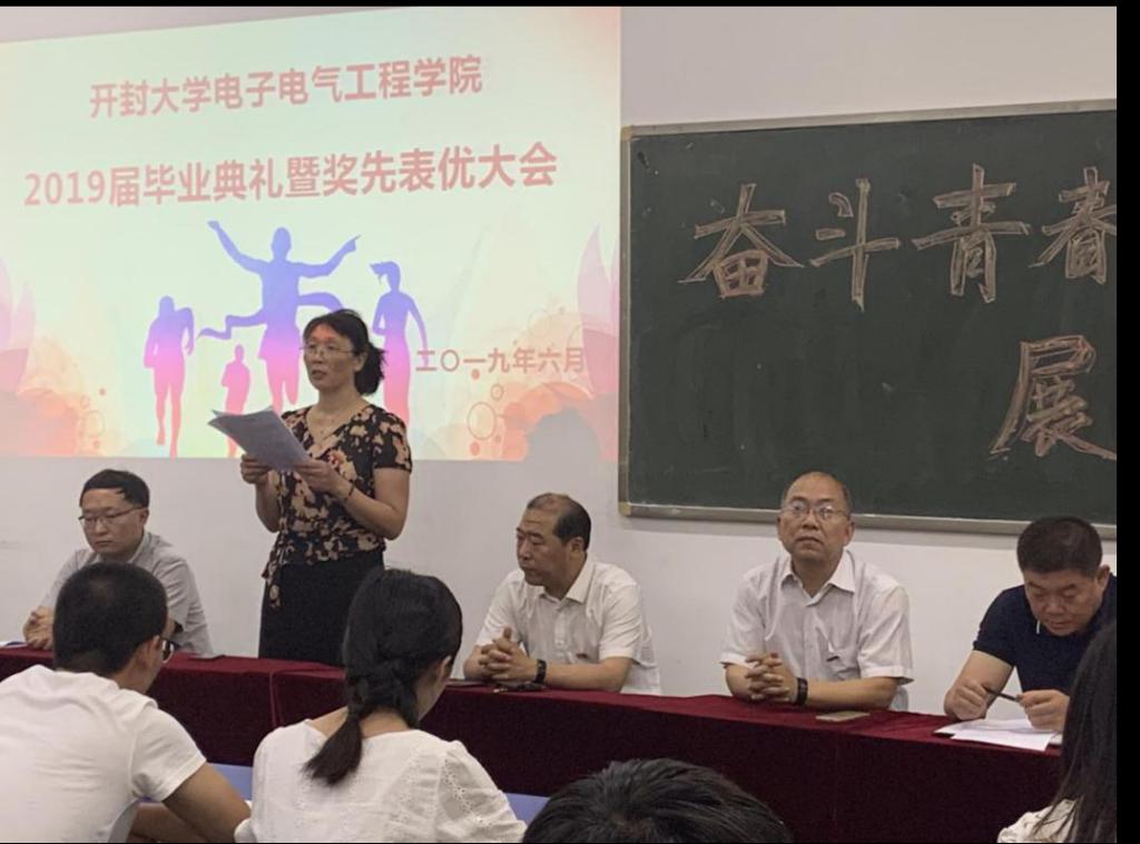 6月13日上午11点,电子电气工程学院在6号楼405教室举办“奋斗青春 有我最美”之“展望未来,扬帆起航”2019届毕业生典礼暨奖优表先大会,校党委副书记储建新出席本次典礼,学院党总支书记张红艳、副书记杨辉、副院长高明远、边疆及全体毕业生毕业生参加了会议。会议由党总支副书记杨辉主持。