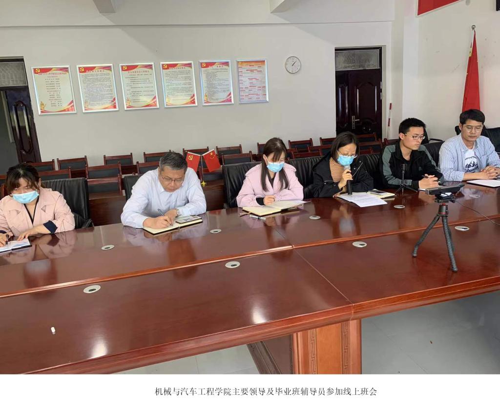 会上,辅导员老师冯真鹏、杨航就补考、线上答辩工作、学生分批次返校、人身安全、金融安全教育、就业协议签订、贷款学生还款、诚信教育、资助两节课、入伍政策讲解等方面内容,向毕业生布置安排相关工作及注意事项。