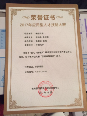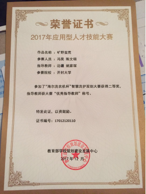 近日,由教育部学校规划建设发展中心主办、中企国教技术培训(北京)中心承办的2017年应用型人才技能大赛全国总决赛在山东省济南市举行,我校学生在比赛中获得三个二等奖,二个三等奖的好成绩。