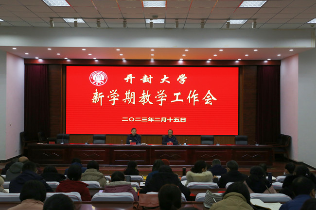 本站讯 2月15日下午,我校在行政楼第一会议厅召开新学期教学工作会。校长宋晓炜出席会议,各院部院长(主任)、副院长、教科办主任、教研室主任、相关教学质量工程项目和技能大赛负责人及团队成员、教授,以及教务处、实验实训中心、督导室相关人员参加了会议。会议由副校长李治主持。