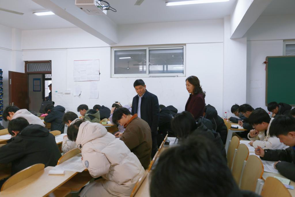本站讯 1月2日,我校期末考试全面展开。校党委书记谭贞、校长王德如、副校长李治深入到各考场进行巡视,相关职能部门负责人和工作人员陪同。