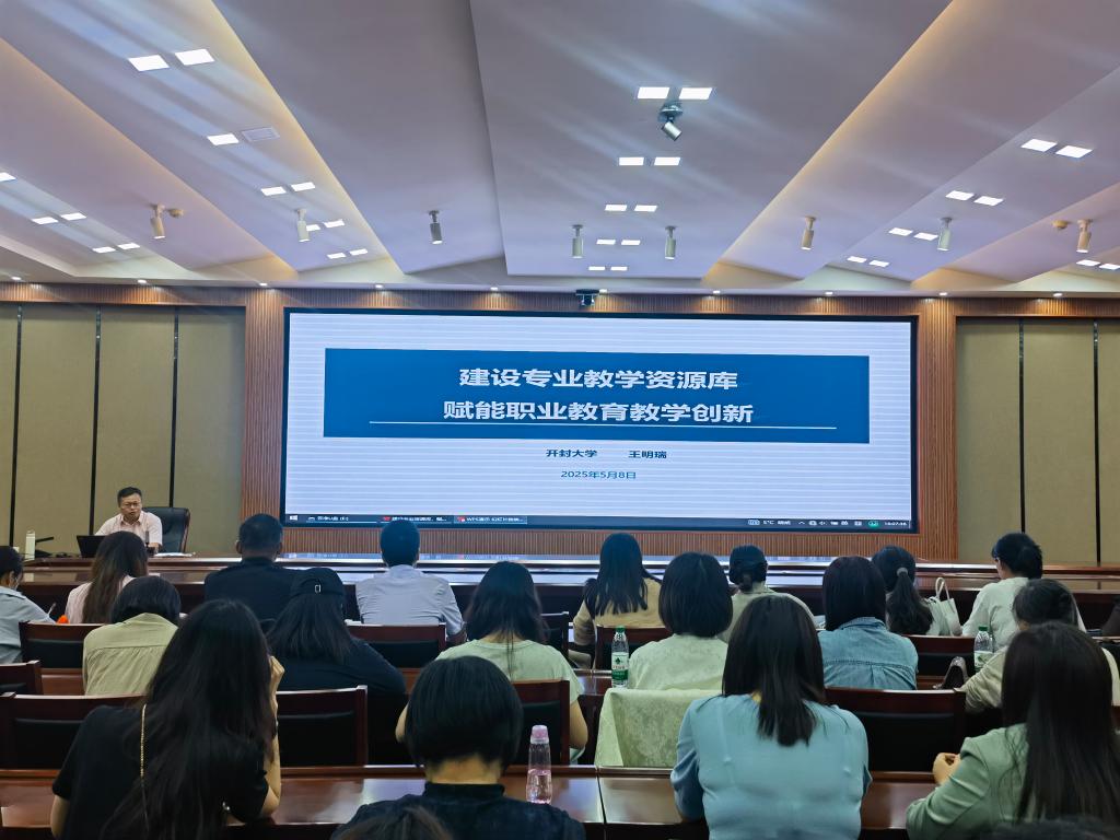 本站讯 5月8日下午,我校在行政楼四楼第二会议厅举办“深耕资源建设,赋能教学创新”专业教学资源库建设专题报告,报告由教务处处长王茜主持,材料与化学工程学院副院长王明瑞主讲,各专业学院副院长、教研室主任等参与国家级、省级、校级专业教学资源库建设老师参加。