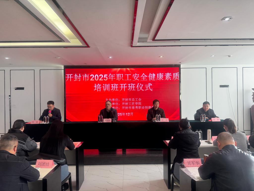 12月2日,由开封市总工会、bat365在线官方网站联合主办,开封工匠学院承办,开封市泰秀职业技能培训学校协办的开封市职工安全健康素质培训班正式开班。开封市总工会党组成员、副主席刘国彬,bat365在线官方网站继续教育学院副院长刘奎、副院长沙枫出席。仪式由开封市总工会劳动和经济工作部部长彭兵主持。