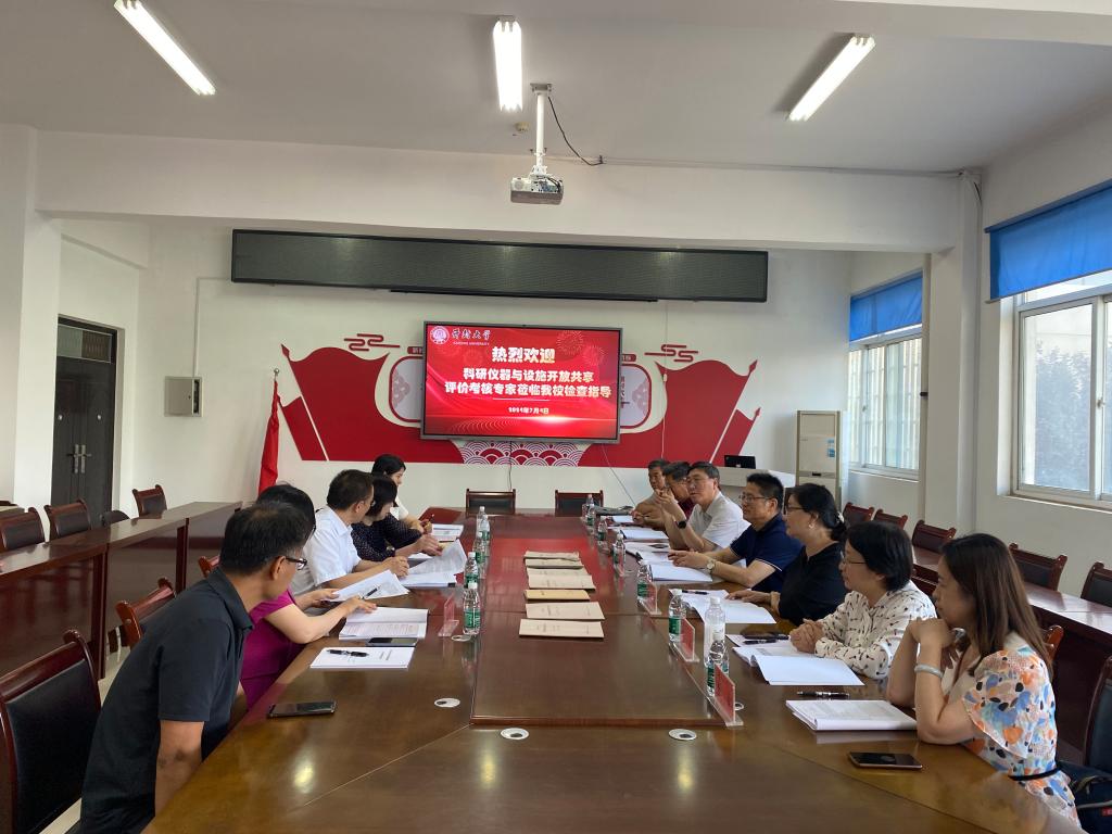 本站讯 7月4日下午,以河南省科技厅下属河南省科研设施与仪器共享服务平台主任刘朝科为组长,科研仪器与设施开放共享评价现场考核组专家一行七人,对我校大型科研仪器开放共享工作情况进行了现场检查。副校长李治,科研处、材料与化学工程学院负责人陪同调研。