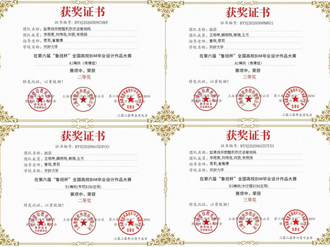 近日,第六届“鲁班杯”全国高校BIM毕业设计作品大赛落下帷幕,我校学生获得两项二等奖、两项三等奖的好成绩。