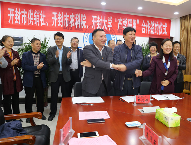 bat365在线官方网站宋志敏校长、开封市供销社樊军科主任、开封市农林科学研究院王培云书记共同签署了“产学研用”战略合作协议。