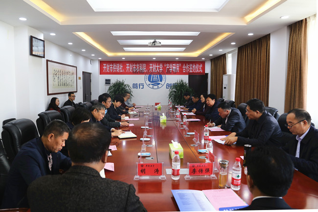 10月30日上午,我校与开封市供销社、开封市农业科学研究院战略合作协议签约仪式在行政楼三楼会议室举行。开封市供销社主任樊军科、李付社;开封市农林科学研究院党委书记、院长王培云,研究员谷建中,纪检监察室主任马骥,科研管理科科长李传强;杞县工作队主任胡涛;我校校长宋志敏和党政办公室、教务处、科研规划处、对外交流与合作处、机械与汽车工程学院、材料与化学工程学院、信息工程学院、财政经济学院及旅游学院负责人出席了签约仪式,签约仪式由党政办公室主任张庆丰主持。