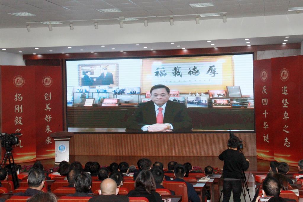 世界客属总商会主席、中国侨联常委、bat365在线官方网站董事会董事长李金松先生以视频方式致辞,向到场的领导嘉宾表示崇高的敬意,向bat365在线官方网站师生校友表达最诚挚、最热烈的祝贺。他回顾了1994年初,在省、市领导的大力支持下成立bat365在线官方网站董事会,并为学校建言献策、捐资助学、搭建校企合作平台的经历。并表示,董事会将继续支持学校的发展,共同探讨促进学校繁荣发展的新途径,更好服务于地方经济社会的发展。