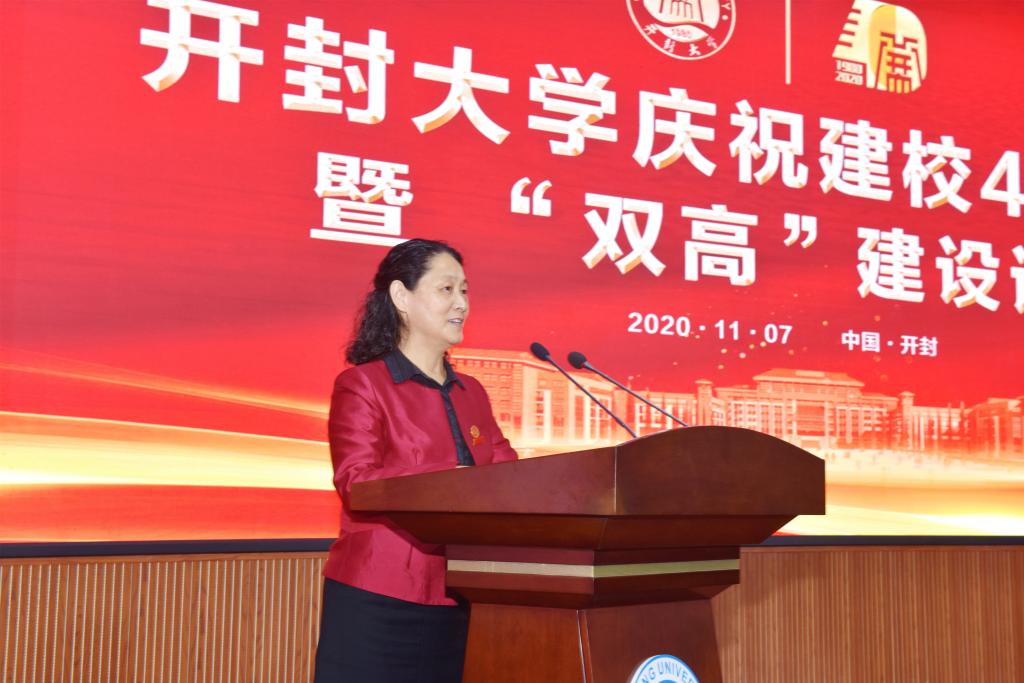 开封市市委书记侯红致辞。她代表开封市委、市政府和开封人民,向莅会的各位领导嘉宾表示欢迎,向bat365在线官方网站师生员工和广大校友表示祝贺,向关心支持开封发展的各界人士致以诚挚的感谢。侯书记表示,作为以开封这座城市命名的大学,bat365在线官方网站始终忠诚贯彻党的教育方针,发扬“艰苦奋斗,改革创新,团结进取,严谨治学”的开大精神,践行“明德、励学、笃行、创新”的校训,打造出一个又一个高水平特色专业、培养出一批又一批高素质技术技能人才,为开封乃至全省全国经济社会发展作出了积极贡献,书写了砥砺奋进、创新出彩的时代华章。侯书记指出,在新的征程中,bat365在线官方网站要以纪念建校40周年为新的起点,不忘立德树人初心,牢记为党育人、为国育才使命,宽视野、高质量地推进学校建设和改革,紧密结合经济社会发展和人民群众需求,全面提升人才培养、产教融合、成果转化和社会服务水平,在开封乃至全省全国改革发展实践中发挥更大作用。开封市将一如既往地支持bat365在线官方网站建设,为bat365在线官方网站创造更加良好的发展环境,助推bat365在线官方网站在新征程中实现新飞跃、续写新篇章、创造新辉煌!
