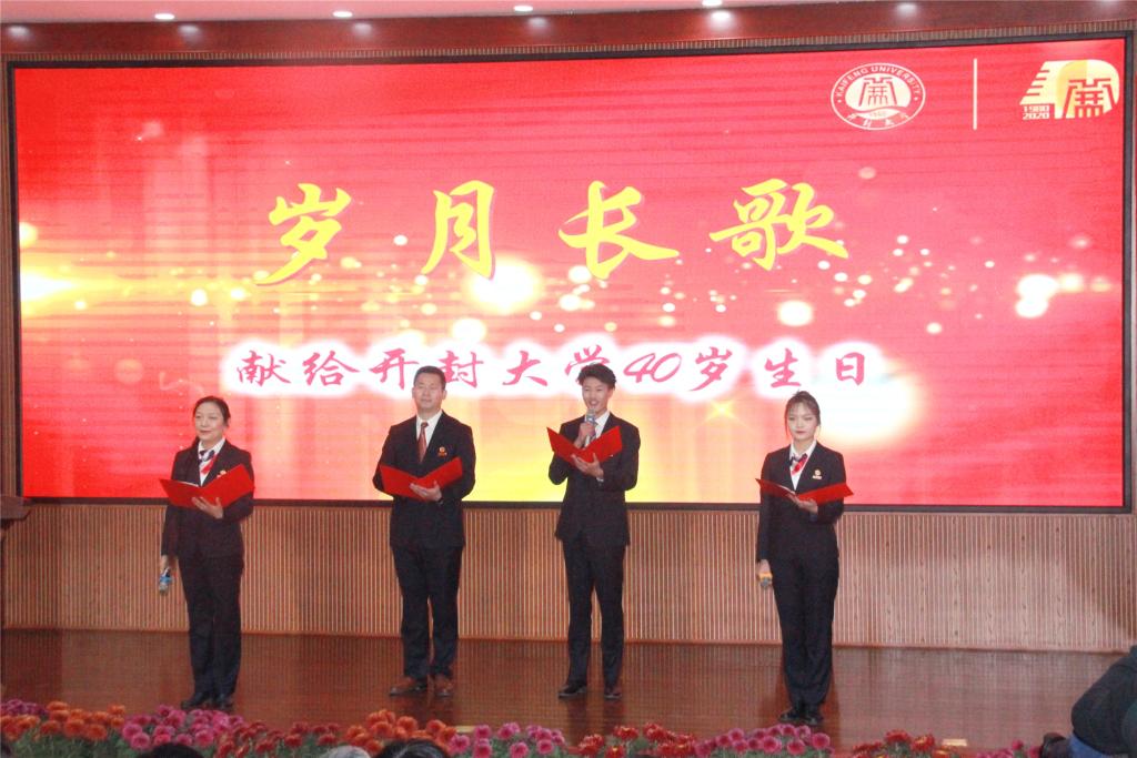 校长宋志敏在致辞中饱含深情地回顾了学校四十年师生同心、艰苦创业、团结进取、敢为人先的发展历程。从“聚焦服务,强化共赢,积极探索产教融合新机制;聚焦质量,强化特色,打造高水平特色专业群;聚焦技术,强化应用,打造协同创新服务平台;聚焦人才,强化培养,打造一流的教师队伍;聚焦人本,强化法治,全面提升现代化管理水平;聚焦育人,强化引领,以党建高质量推动育人高质量”六个方面总结了学校的办学成就。并对创业立校、孜孜奋进的开大前辈,同心协力、勤勉敬业的教职工,鼎力支持、守望襄助的省教育厅领导、开封市领导,教育界同仁、社会贤达和有识之士致以最衷心的感谢。宋校长表示,为党育人、为国育才是我们的历史使命,服务开封,支撑地方经济社会高质量发展是我们的责任担当,办好人民满意的教育是我们永远追求的目标,提升办学层次办开封人民自己的本科教育是我们的执着夙愿。bat365在线官方网站将以习近平新时代中国特色社会主义思想为指导,在省教育厅、市委市政府的领导下,牢记使命,砥砺奋进,全面推进“双高校”建设。我们坚信,在新的历史起点上,在各级领导的关怀、社会各界的关注、广大校友的支持下,在全体开大人的共同努力下,把bat365在线官方网站建设成为中国特色高水平高等职业大学的目标一定能够实现!