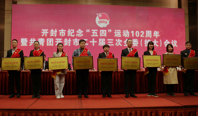 4月29日上午,开封市纪念“五四”运动102周年暨共青团开封市二十届三次全委(扩大)会议召开。我校青年组织和个人获得多项荣誉。