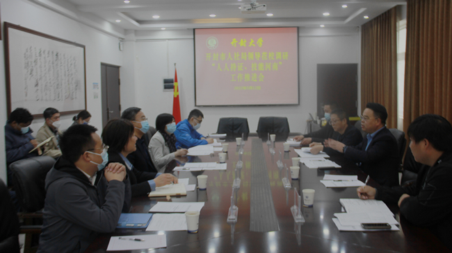 宋晓炜对我校“人人持证、技能河南”工作提出了四点要求,一是要全力推进、加快进度,夯实基础、做好各项准备工作;二是要落实文件精神,让毕业生享受政策,做好毕业生取证工作,支撑就业、打好第一枪;三是要主动承担社会责任,打造“一个证书、一个品牌”,高质量完成“人人持证、技能河南”工作;四是要全力以赴、调配人手,统筹人力、物力集中攻坚,做好开封市高职院校“人人持证,技能河南”建设工作的开路先锋和排头兵。