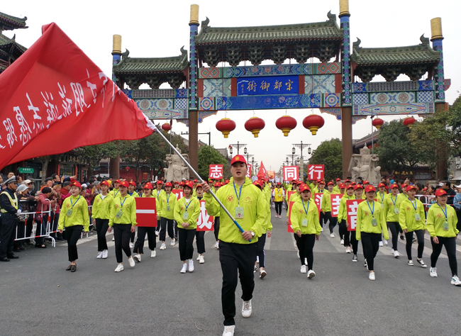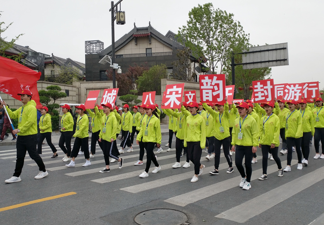 本站讯 4月3日上午,2018中国(开封)清明文化节在清明上河园隆重开幕,我院组织64名学生组建方阵参加了此次清明文化节巡游活动。