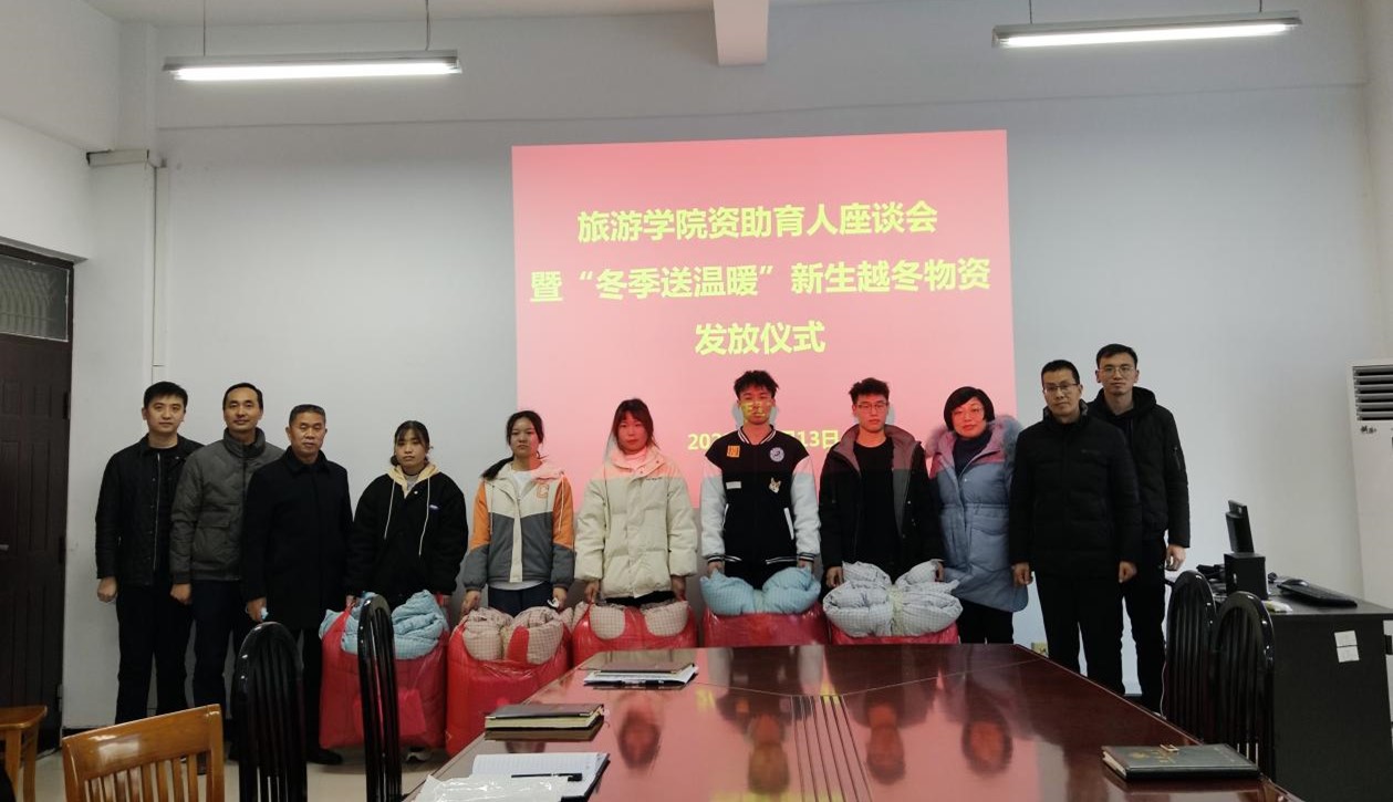 活动伊始,院领导与参会同学亲切交谈,了解学生入校以来生活和学习情况,关切询问学生家庭情况,现场气氛温暖祥和,与会老师给所有参会学生发放了暖冬物资。丁永琦勉励同学们要坚定信心、遵守校规校纪、努力学习科学文化知识,积极参加学校和学院组织的的各项活动,用知识武装自己,早日成为高素质、高标准人才。受助学生代表袁佳亮发言表示,此次活动感受到了学校和学院给予的温暖,一定会努力学习,回报社会。尤影强调旅游学院是所有学生温暖的家,国家的助学政策在帮助困难同学,学校和学院在支持鼓励着困难同学,希望同学们安心学习,自强不息、感恩奉献,将温暖传递给更多的人。