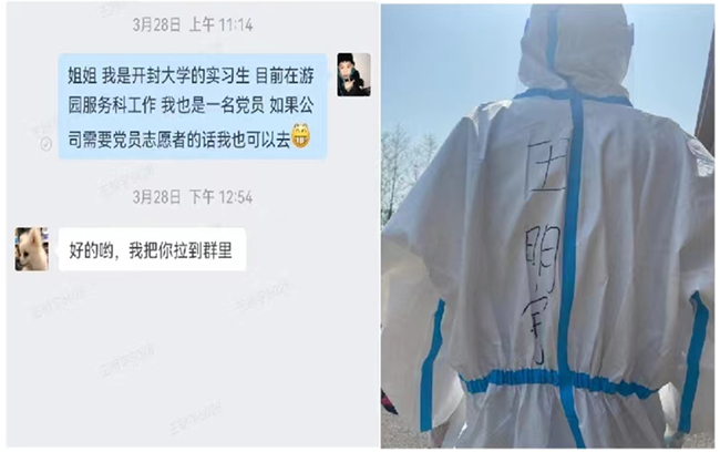 近期上海新冠疫情形势严峻,处于与奥密克戎变异毒株殊死较量之中。bat365在线官方网站旅游学院严格按照省、市、学校上级管理部门的各项要求做好校内外学生的疫情防控和心理疏导工作,上海海昌海洋公园作为学院校企合作基地,疫情爆发后仍有16名学生依然坚守岗位,指导教师按照要求每天与学生联系沟通。因疫情原因,园区处于闭园状态,员工在公司内进行封闭管理并每天进行核酸检测,核酸检测前的准备工作和核酸检测过程中的秩序疏导工作需要的人员较多。19级旅游管理专业王明宇同学作为实习生也是旅游学院学生党支部的一名预备党员,在得到园区抗疫有关消息后,主动请缨,与公司其他正式党员共同组成一支“服务人民,助力海昌,共同抗疫”的先锋队,发挥“一名党员一面旗”的先锋模范作用。