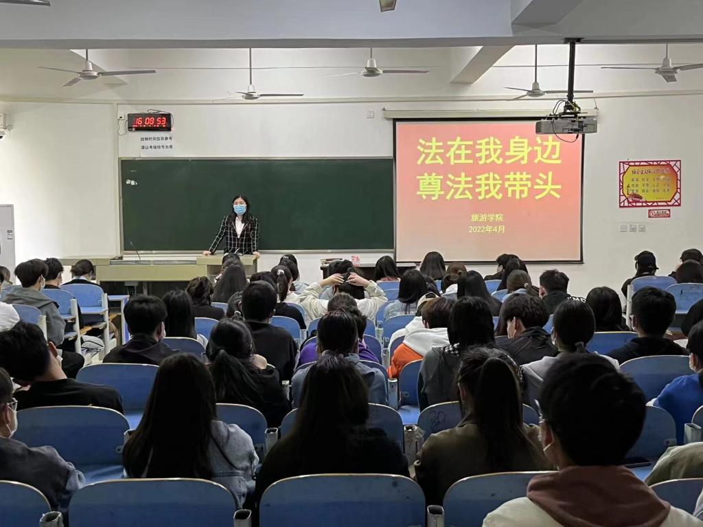 为深入学习贯彻习近平新时代中国特色社会主义思想,落实习近平总书记关于教育的重要论述和习近平法治思想,提升学生法治素养,旅游学院于4月18日-22日组织开展了以“法在我身边,尊法我带头”为主题的法治宣传周活动。