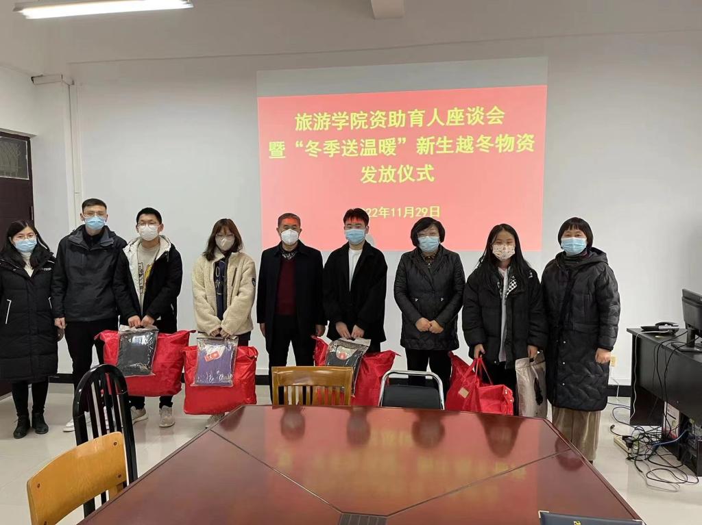 为把党和国家对家庭经济困难学生的关怀落实落细,确保家庭经济困难学生温暖过冬,11月29日下午,旅游学院在院二楼会议室开展“资助育人”座谈会暨“冬季送温暖”新生越冬物资发放仪式。学院党总支书记尤影,院长丁永琦,全体辅导员和受助学生代表参加了本次仪式。