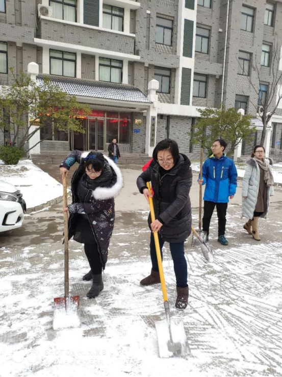1月10日,我市迎来了2019年的第一场雪。雪景美化了校园,同时也为教职工出行带来了不便。为充分发挥党员的先锋模范作用,以实际行动践行党的十九大精神,旅游学院党总支组织全体党员开展义务扫雪。