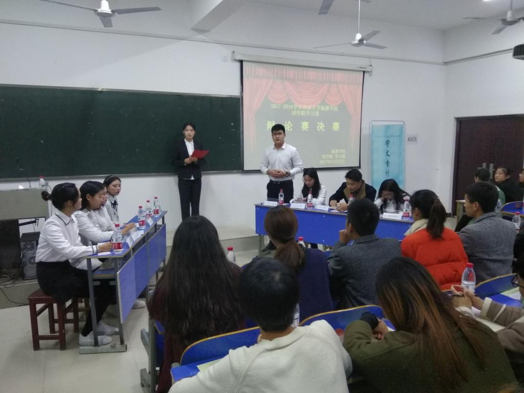 11月22日晚上七点半,旅游学院举行的以“激情飞扬,辩出自我”为主题的辩论赛总决赛在15号楼425教室拉开帷幕,副书记李鹏,团总支书记刘中然,辅导员老师陈英姿、袁安娜、郑笑丛参加了辩论赛,17级市营三班和17级酒管三班两个班级经过层层选拔,进入了辩论赛总决赛。