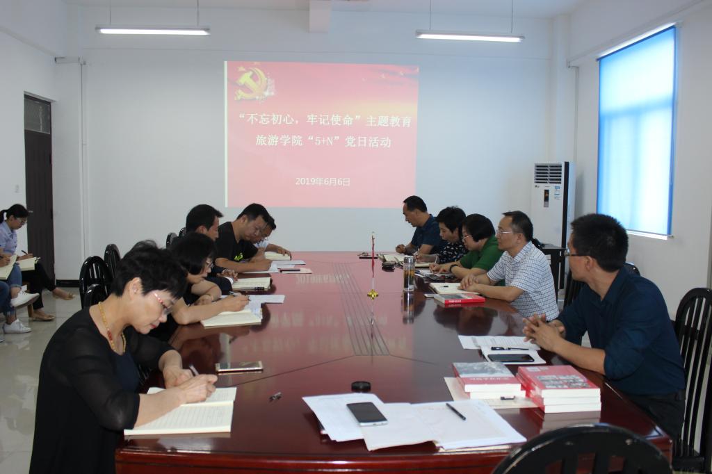 为了学习贯彻习近平总书记在中央“不忘初心、牢记使命”主题教育工作会议上的重要讲话精神,落实《中共中央关于在全党开展“不忘初心、牢记使命”主题教育的意见》的要求,旅游学院于6月6日下午召开“5+N”主题党日教育活动专题会议,校党委委员、副校长李治和学院全体党员教师参加此次活动。