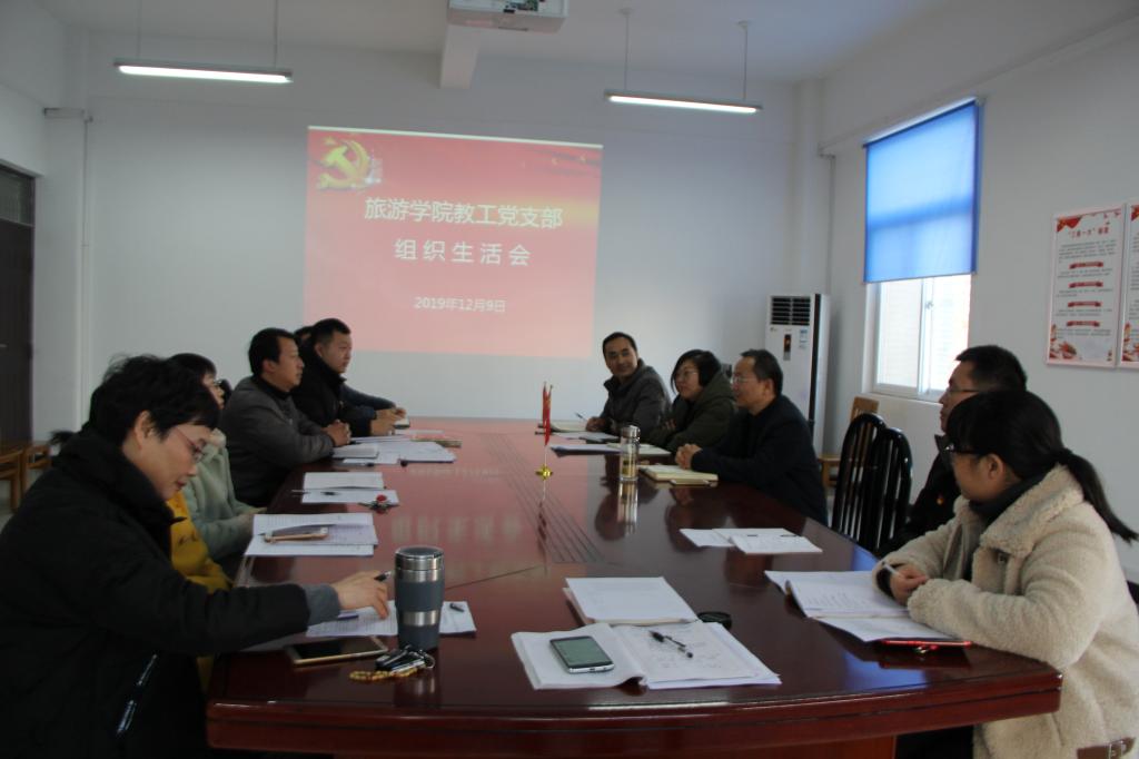 12月9日下午,旅游学院教工党支部在二楼会议室举行组织生活会,开展2019年度教工党支部党员民主评议。校党委委员、副校长李治参加会议,会议由教工党支部书记王振鹏主持。