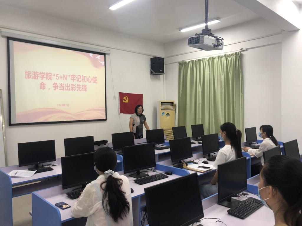 为庆祝中国共产党成立99周年,7月6日下午,旅游学院学生党支部于11#504召开预备党员转正大会暨“牢记初心使命,争当出彩先锋”毕业生党员教育会。会议由袁安娜老师主持,党总支书记尤影,部分教师党员及全体学生党员参加会议。