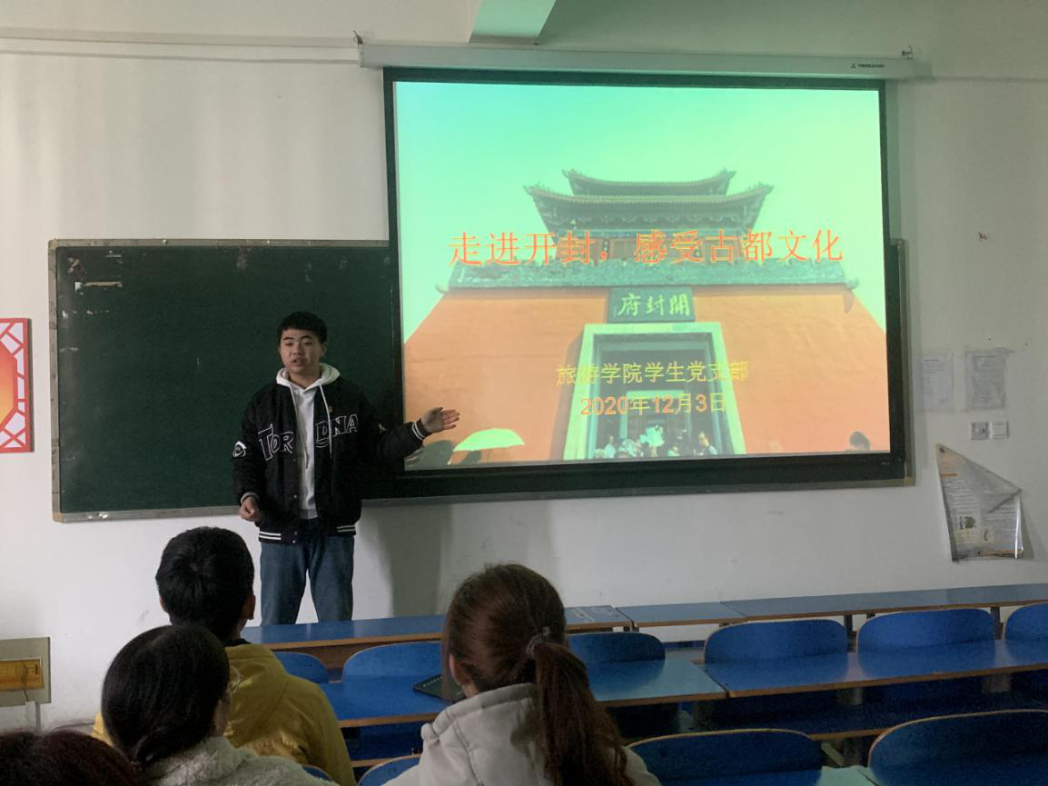 为展示开封悠久的历史底蕴,领略开封精神内涵,憧憬开封更加出彩的未来。旅游学院学生党支部于12月3日,在15号楼415开展了“走进开封,感受古都文化”的主题党日活动,旅游学院学生党支部全体学生党员参与了本次活动。