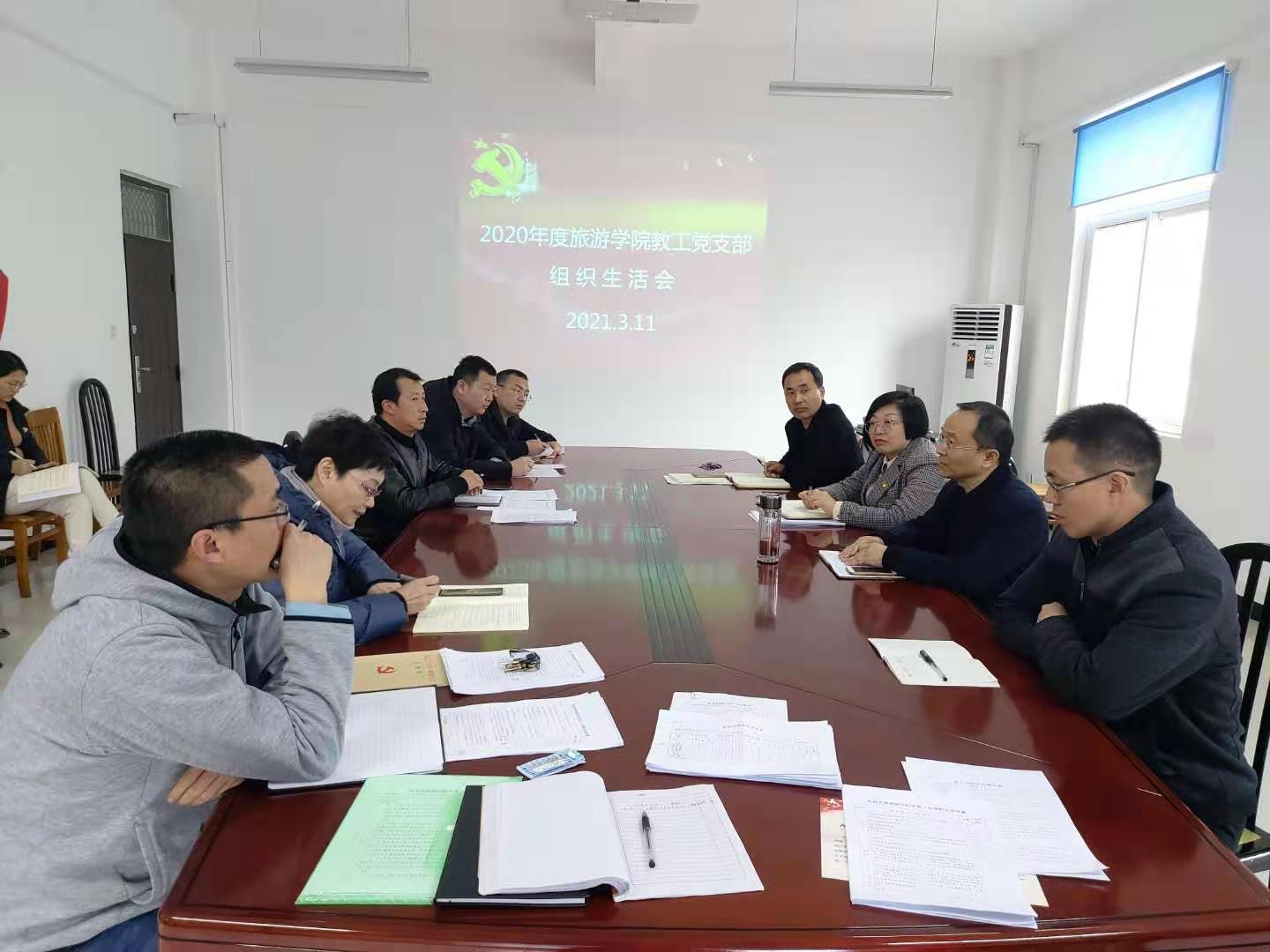 为进一步加强基层党组织建设和党员教育管理,3月11日下午,按照学校党委的统一部署,旅游学院教工党支部召开组织生活会,支部全体党员参加。校党委委员、副校长李治同志作为普通党员参加会议,会议由教工党支部书记王振鹏主持。