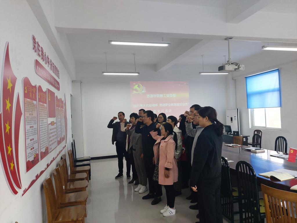 为了践行习近平总书记在抗疫表彰大会上的讲话精神,深入推进职业教育提质培优计划,10月22日下午,旅游学院召开“践行伟大抗疫精神,推进职业教育提质培优”主题党日活动。教工党支部书记王振鹏主持会议。