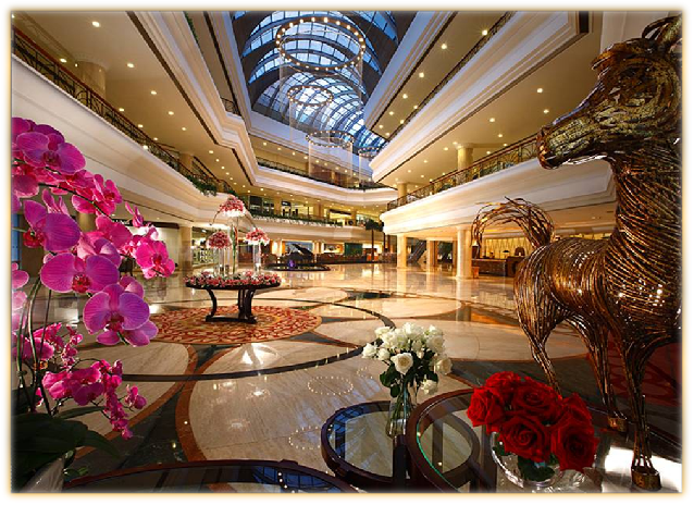 酒店占地面积26000平方米,总建筑面积74000平方米。拥有各式客房600间(套),拥有风格各异的贵宾包厢、中餐零点餐厅、西餐厅、团队餐厅、大堂吧等36个,共3000余个餐位;有大型多功能厅5个、中小型会议室15个,会务设施配套齐全;同时拥有1万平米的先进齐全的健身娱乐休闲设施。
