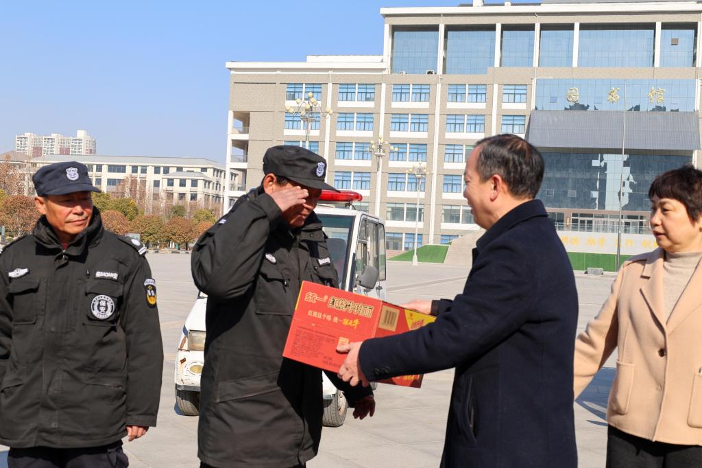 本站讯  岁暮天寒,真情送暖。1月17日上午,校党委委员、工会主席成芳和校党委委员、副校长曾小平代表学校领导慰问一线教职工。