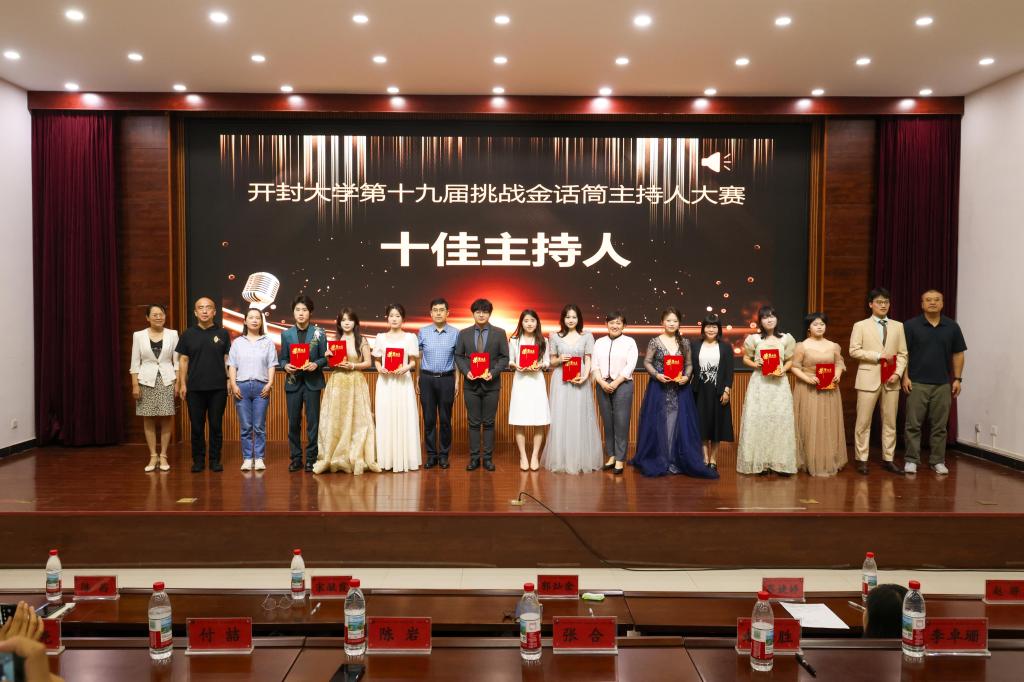 本次大赛通过初赛、复赛的层层选拔,共有十位选手进入决赛。决赛设置“闪亮登场”“模拟主持”“即兴评述”三个环节,全面考核选手的语言表达、临场应变和舞台掌控能力。经过激烈角逐,数字经贸学院学生张靖康脱颖而出,荣获金话筒奖;数字经贸学院学生李美林和陈勇分别获得银话筒和铜话筒奖。