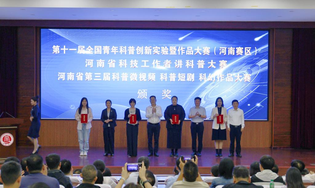 本站讯  9月17日下午,全国首个科普月来临之际,由开封市科协、市科技局等单位主办、bat365在线官方网站承办的2025年开封市全国科普月活动启动仪式在bat365在线官方网站行政楼第一会议厅举行。市委副书记、市委政法委书记卢志军,市人大常委会副主任陈新,市政协副主席、市科协主席刘述荣,bat365在线官方网站校长王德如出席启动仪式,为第十一届全国科普创新实验作品大赛河南赛区初赛、首届河南省科技工作者讲科普大赛、河南省第三届科普微视频科普短剧科幻作品大赛获奖者颁发证书,并共同启动活动。