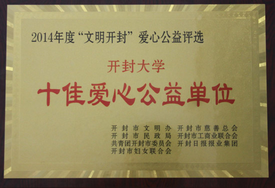 我校荣获2014年度“文明开封”十佳公益单位