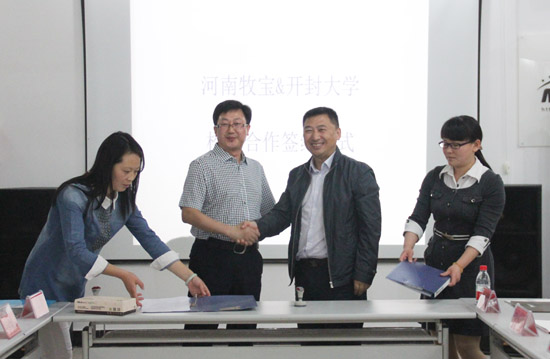 我校招生就业处处长张涛与河南牧宝常务副总何长青签订了合作协议。双方通过合作,对未来充满信心,相信这次合作必将促进学校人才培养目标与企业需求的有机融合,学生技能训练与岗位要求同步契合,专业建设与企业发展协同推进,人才培养模式不断创新,合作内涵不断深化,实现优势互补、互利共赢,共同为地方经济发展做出更大贡献!