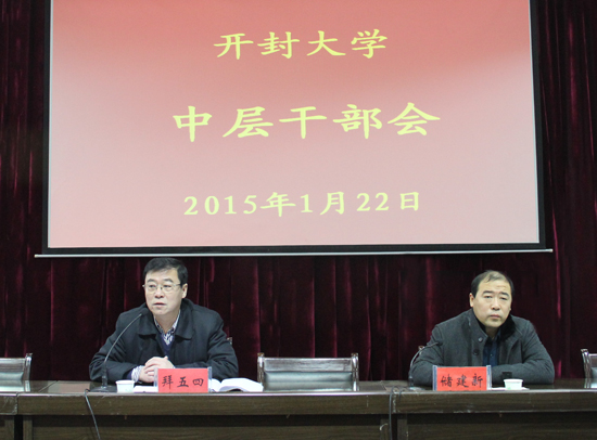 本站讯 1月22日下午,我校在国际教育学院一楼会议厅召开中层干部会,校领导拜五四、储建新、万是明、赵辉、范金梅、李新春、耿广利、成芳、翟宝辰出席会议,全体中层正副职参加会议,会议由校党委副书记储建新主持。