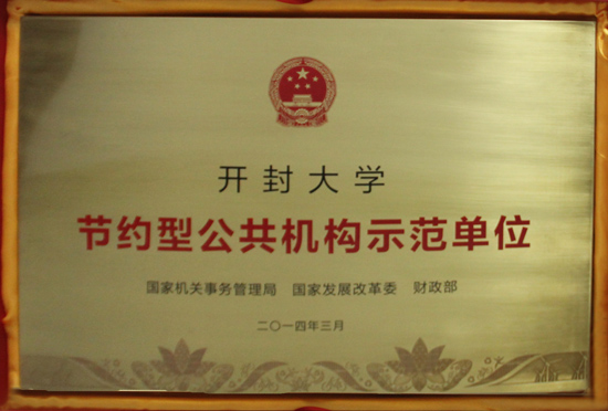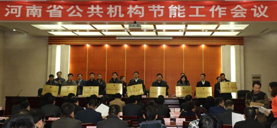 本站讯 2月10日,河南省公共机构节能工作会议在河南省机关事务局会议室举行,会上向我省获得国家级节约型公共机构示范单位举行了授牌仪式。我校副校长耿广利代表学校领取了由国家机关事务局、国家发改委、财政部联合颁发的国家级节约型公共机构示范单位标牌。