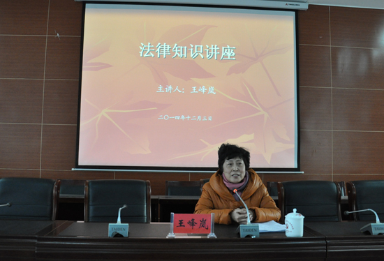 本站讯 12月3日下午,我校在土木建筑工程学院六楼报告厅举办了法制宣传讲座,讲座由原开封市中级人民法院民事审判庭庭长王峰岚主讲。校领导张新梅、拜五四、储建新、范金梅、何世玲、李新春、耿广利、成芳、翟宝辰出席了此次讲座,学校党务、行政、教辅部门、科级以上干部及相关人员聆听了此次讲座。讲座由校工会主席成芳主持。