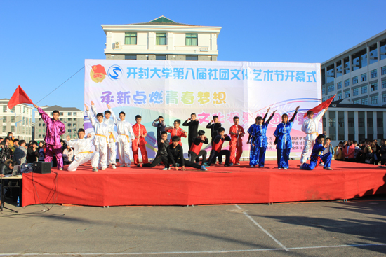 演出中,来自我校的50余个社团为大家呈现了一个个具有社团自身特色的精彩节目。太极拳协会、武术协会的同学们用自己高超的技艺让大家领略了中华武术的精髓内涵,书法协会的同学在歌曲“兰亭序”的悠扬旋律中展示了他们的书法功底。吉他社团带来的精彩吉他弹唱更是将现场气氛再次推向高潮。同时为了更好地促进我校的社团发展,加强与各兄弟院校的交流和沟通,河南大学音乐社和黄河水院Bbox社团的同学也带来了精彩的表演,博得了到场观众的热烈掌声。