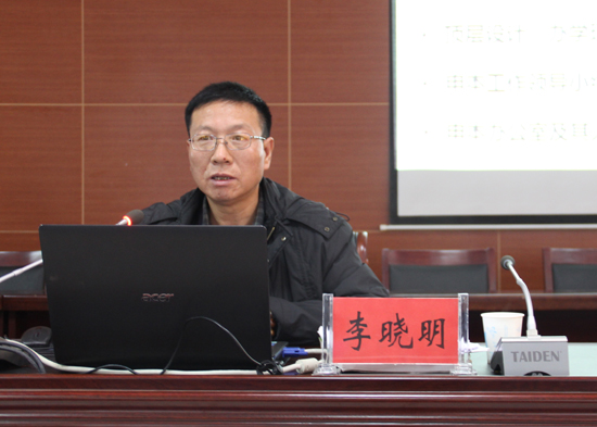 本站讯 为了进一步推进我校“升本”工作,明确责任目标,强化责任意识,近日,我校邀请贺州学院李晓明博士来校就“升本”工作作专题报告。报告会由我校党委副书记储建新主持。
