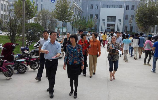 本站讯 9月22日下午,开封市正市长级干部朱丽萍一行到我校视察国家二类城市语言文字工作评估准备情况。校领导拜五四、赵辉、耿广利一同视察,党政办公室、党委宣传部、校语委、后勤服务中心、人文学院等相关部门负责人参与了该项活动。