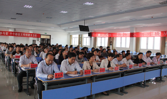 本站讯 9月29日下午,我校在土木建筑工程学院六楼会议厅,召开了党的群众路线教育实践活动情况通报及群众评价会议。市委第13督导组副组长、人社局原副局长正县级领导干部王守忠,督导组成员、市工商联副主席王豫出席会议。我校领导班子成员,省、市人大代表、党代会代表、政协委员,中层干部、离退休老同志、教代会代表、民主党派和无党派人士和学生代表共104人参加。会议由校长拜五四主持。