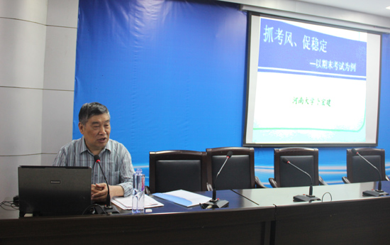 本站讯 6月16日上午,我校邀请河南省知名教学管理专家、河南大学督导室主任卜宏建教授做了题为《抓考风、保稳定——以期末考试为例谈教学质量监控》的专题讲座。副校长赵辉、各院部院长(主任)、副院长、教研室主任、教学秘书以及教务处、实验实训中心和督导室相关人员聆听了讲座。