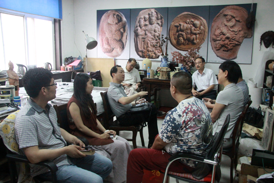 本站讯 6月5日下午,香港中华非物质文化遗产发展基金会陈铭贤博士一行访问考察我校非遗基地、动漫专业。校正县级调研员崔林、艺术学院院长魏跃进、院党总支副书记李俊州及艺术设计学院部分教师陪同参观。