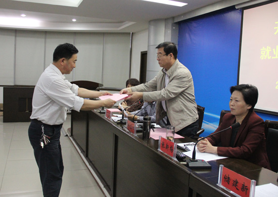 会上,各院部领导签订2014年招生就业工作目标责任书,并呈交给校长。