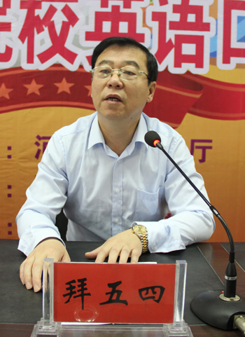 开幕式上,拜校长代表我校对各位专家及兄弟院校师生的到来表示热烈欢迎,并预祝大赛取得圆满成功。安阳工学院副院长万鹏杰代表大赛组委会对我校领导及相关部门提供的帮助和支持表示感谢,并希望各高职高专院校以此比赛为契机,进一步提高学生的英语实际应用能力和综合素质,使我省专科英语教学整体水平再上台阶。