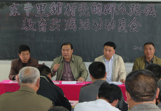 东十里铺村委负责人杨彦启宣读了城郊乡社区、村党的群众路线教育实践活动实施方案,“包村干部”城郊乡司法所长乔好孔做了动员讲话。