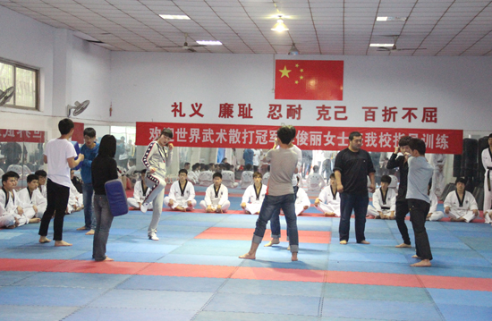 散打冠军李俊丽在我校跆拳道馆为我校跆拳道协会会员进行现场指导。她向大家传授了一些防身散打技巧和健身技巧,结合自身经历告诉大家如何在体育运动中养成坚忍不拔的性格。